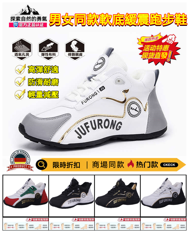 • 按摩厚底休閒鞋NT$998NT$1398人氣熱銷~時尚厚底休閒運動鞋,純手工工藝,輕彈舒適,耐穿透氣,顯高顯瘦!即使長時間穿腳也不會累!最後200雙