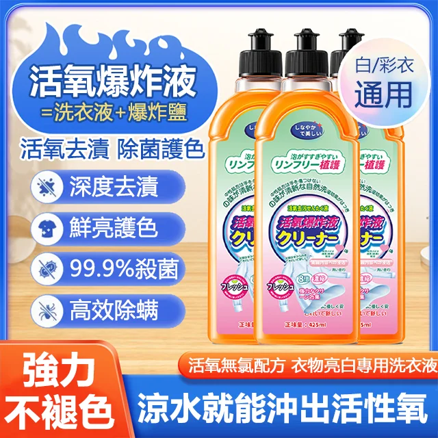 濃縮高效活氧爆炸泡泡液,去污去油漬去黃,白色衣服更白,彩色衣服更亮。 溫和不傷手,孕婦小孩的衣服都可以洗!