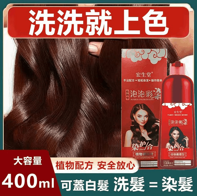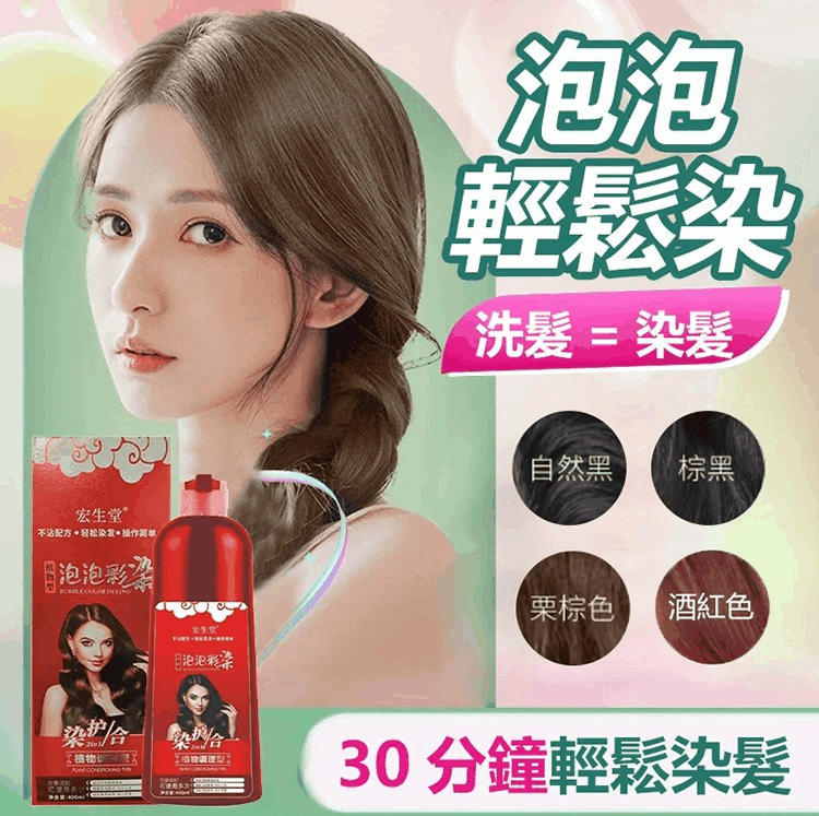 「新款髮泡泡染髮劑」新品上市,遮白髮染髮,就用植物泡泡染,固色持久,不傷頭皮,健康染髮!買一發二!!!