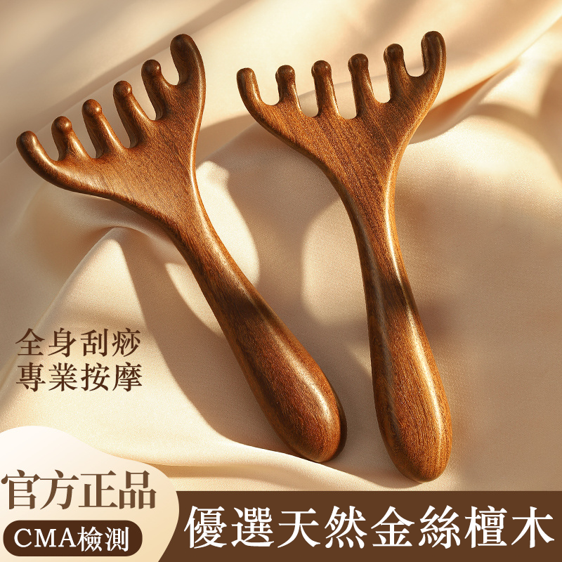 鹿角按摩經絡梳 養生頭療、足療、手部按摩工具 天然檀木頭皮淋巴刮痧疏通神器